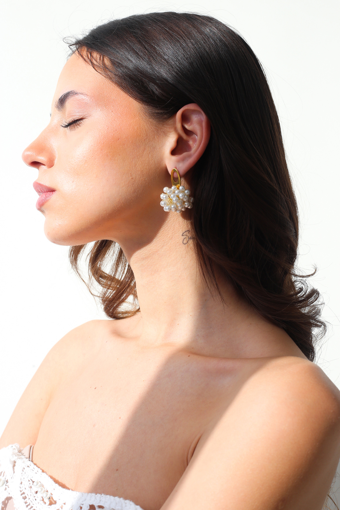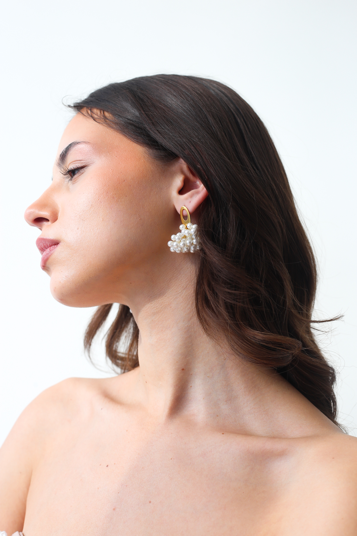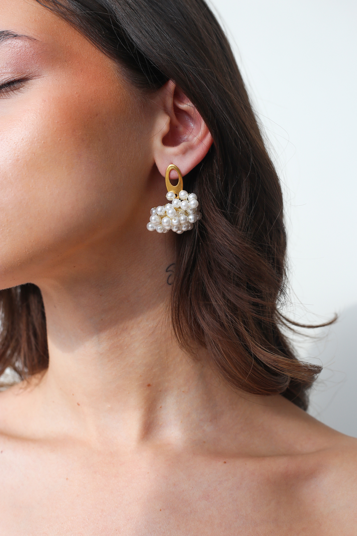 Elegant and distinctive, the Binaca Pearl Earrings are designed to bring a refined statement to your jewelry collection. Featuring a gold-tone geometric stud, these earrings are beautifully finished with a cluster of luminous pearl beads that create a soft, voluminous silhouette.