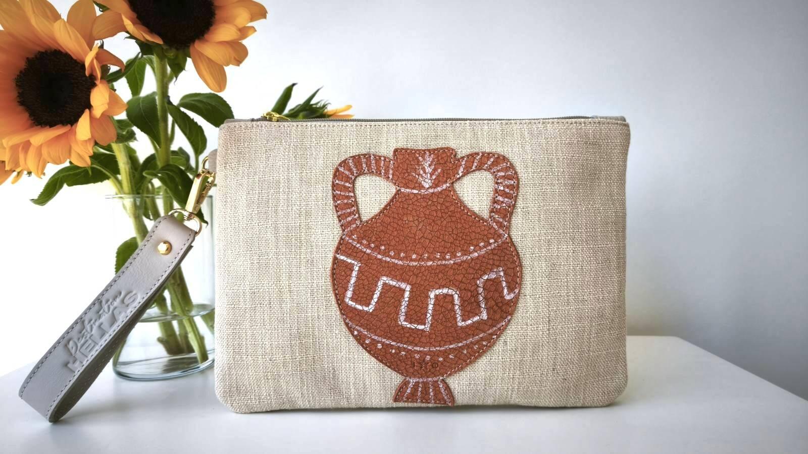 Hand-painted pouches with leather details. Inspired by the sea, the sun and the beauty